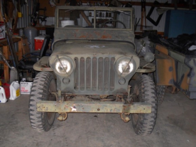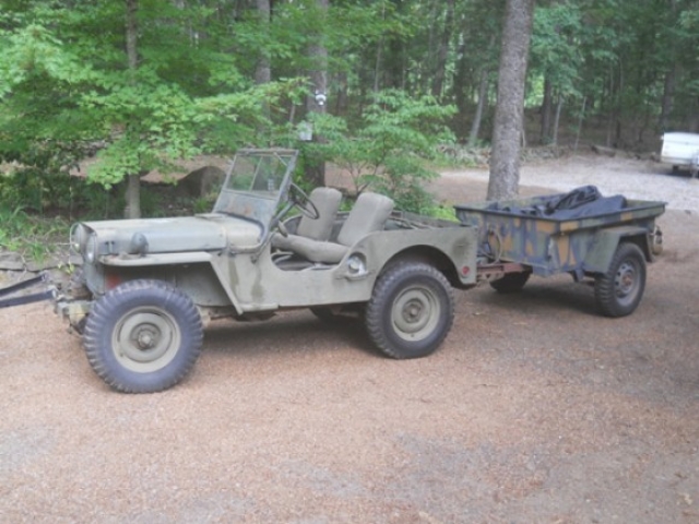 Yard Sale Willy! I purchased this M38 from an elderly gentlemen in my Church. I had spotted it in his yard and inquired about it. He was reluctant to sell so I began a friendship with him, telling him all I knew about the M38. I would tease him about coming over and putting a cover over it or offer to help him get it out of the weather. I think his wife was beginning to wear on him and about a year later, he asked me if I was interested in buying a jeep! I said, “if it’s priced right!” He assured me it would be. I went to his home the next week and struck a deal with him. Not only for the M38 but he threw in a nearly mint M416 1/4 Ton trailer full of jeep parts as well! I couldn’t be happier with my purchase and have begun collecting original military parts to use in the restoration. It is currently resting in a barn safe and dry until I can do a complete rebuild. The first two photos are immediately after getting the jeep and trailer home. The third is M38 paitently waiting in the barn or restoration to begin.