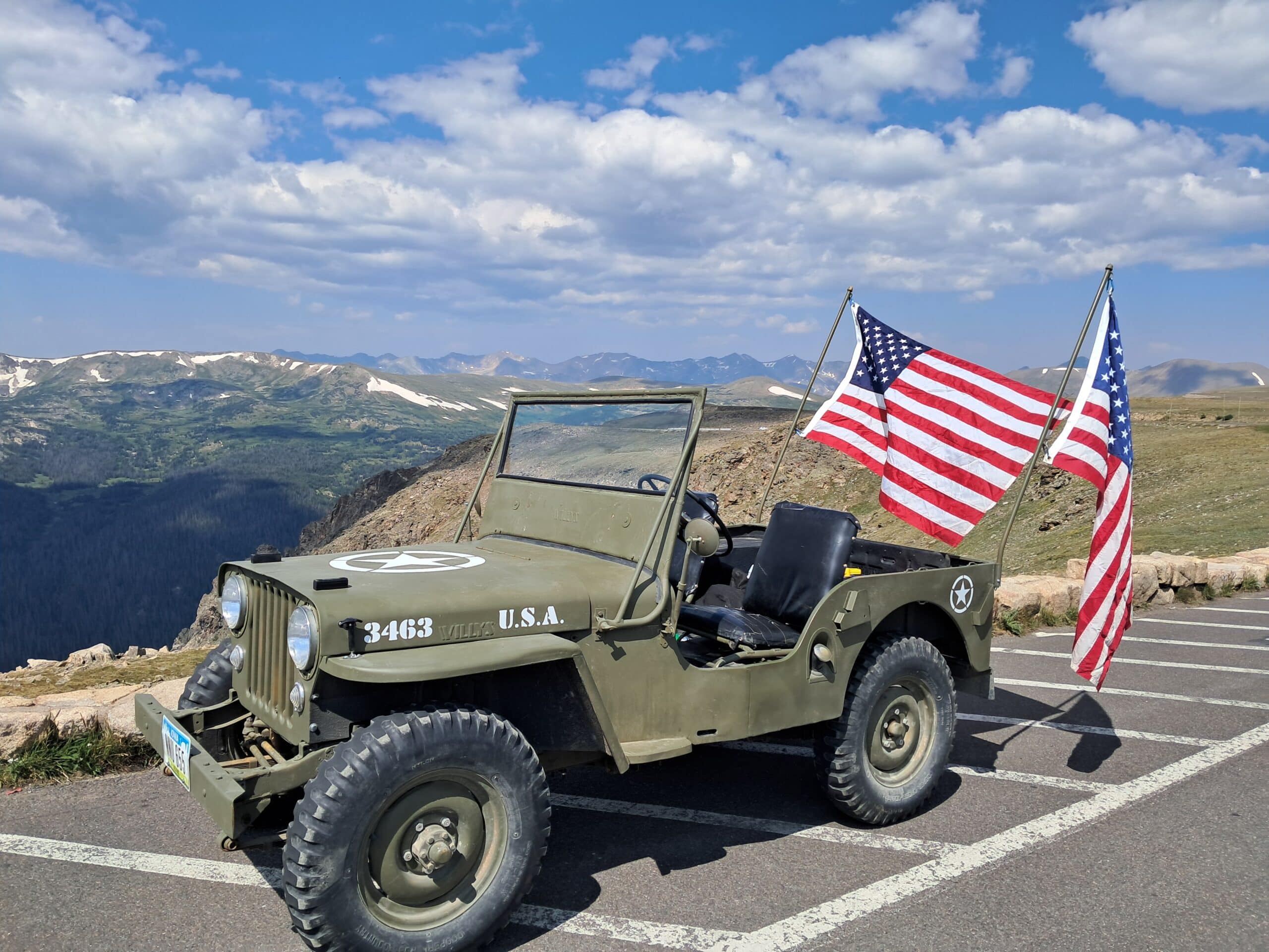 This is my Father’s 1947 CJ2A. The picture was taken in Rocky Mountain National Park on Trail Ridge Road. To get up to the Alpine Visitors Center we drove the Willys up Old Fall River Road, which is a one lane, up only, non-surfaced road with hairpin switch backs and without guard rails.