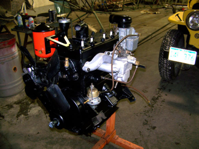 It is a 1948 CJ-2A, but it doesn’t have any Willys stampings, and the windshield matches the M38. We are assuming it is a aftermarket body, since there are no body tags any longer. Anyways, it used to be blue with black wheels. Had a local shop do a repaint and a paint matched spray in bedliner. I had my aunt sew up the seats and some tailgate chain sleeves. It has the L134 Go-Devil. We rebuilt it when we first got it, and the #4 piston/wrist pin was froze. New piston and a hone and it was good to go, but after the rebuild it spun a rod bearing. (New ones were used, not sure what happened). Anyways the engine pics are after the second rebuild which also included a fresh coat of paint, and the oil canister restoration. The engine is now in, fires right up, and is awaiting some carb tuning.