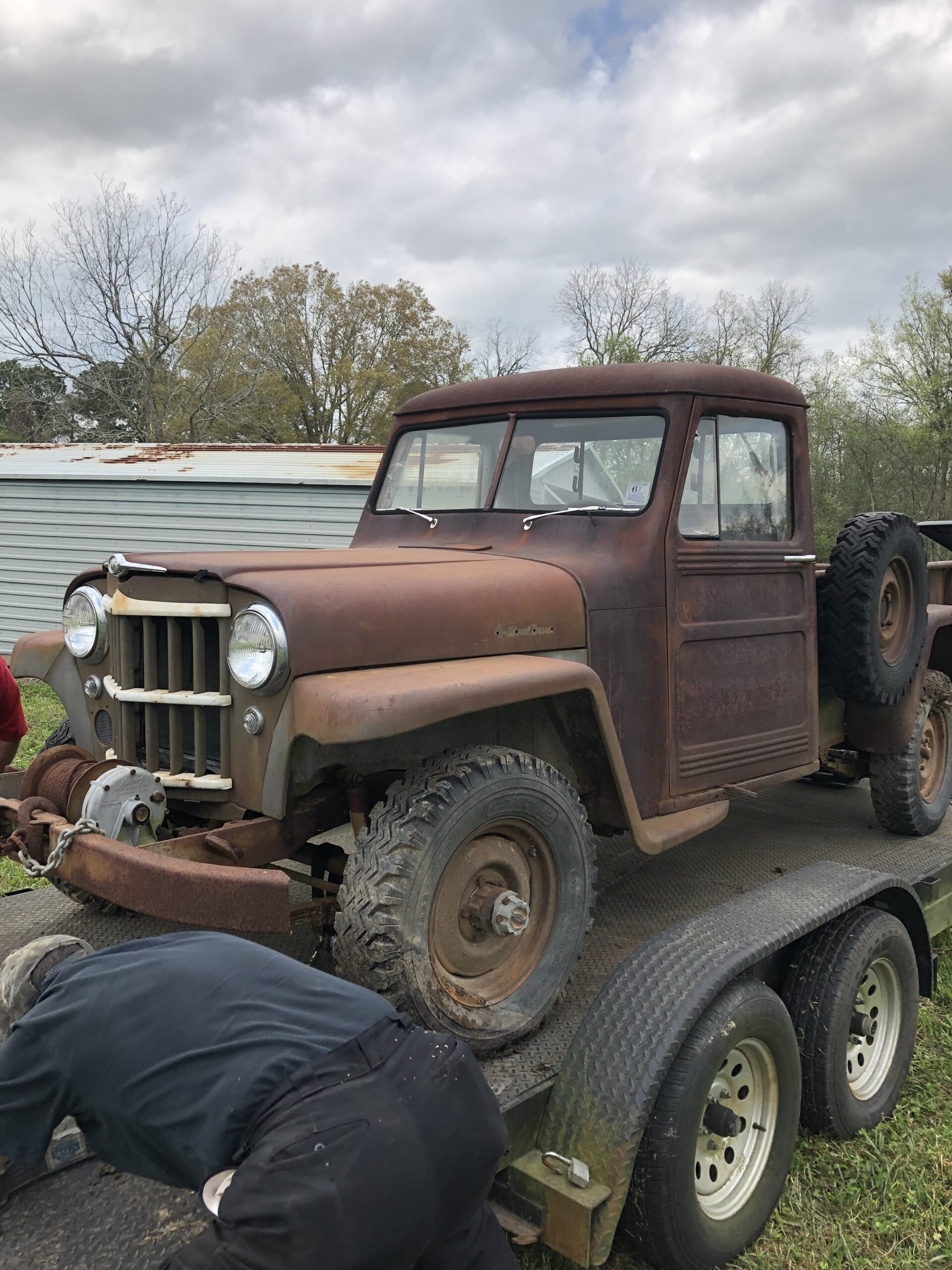 I purchased a very similar 1954 Willys truck here in New Mexico, same patina! Got it running, and new brakes installed, so now it runs AND stops! I will order replacement floor boards, which seem to be the only rust trough areas, from Kaiser Willys. Also have the bed extender and PTO shaft. Won’t be a daily driver, but to the feed store, hardware place and some local trips with the grandchildren. Looking forward to continuing the mechanical updates to the old Jeep!