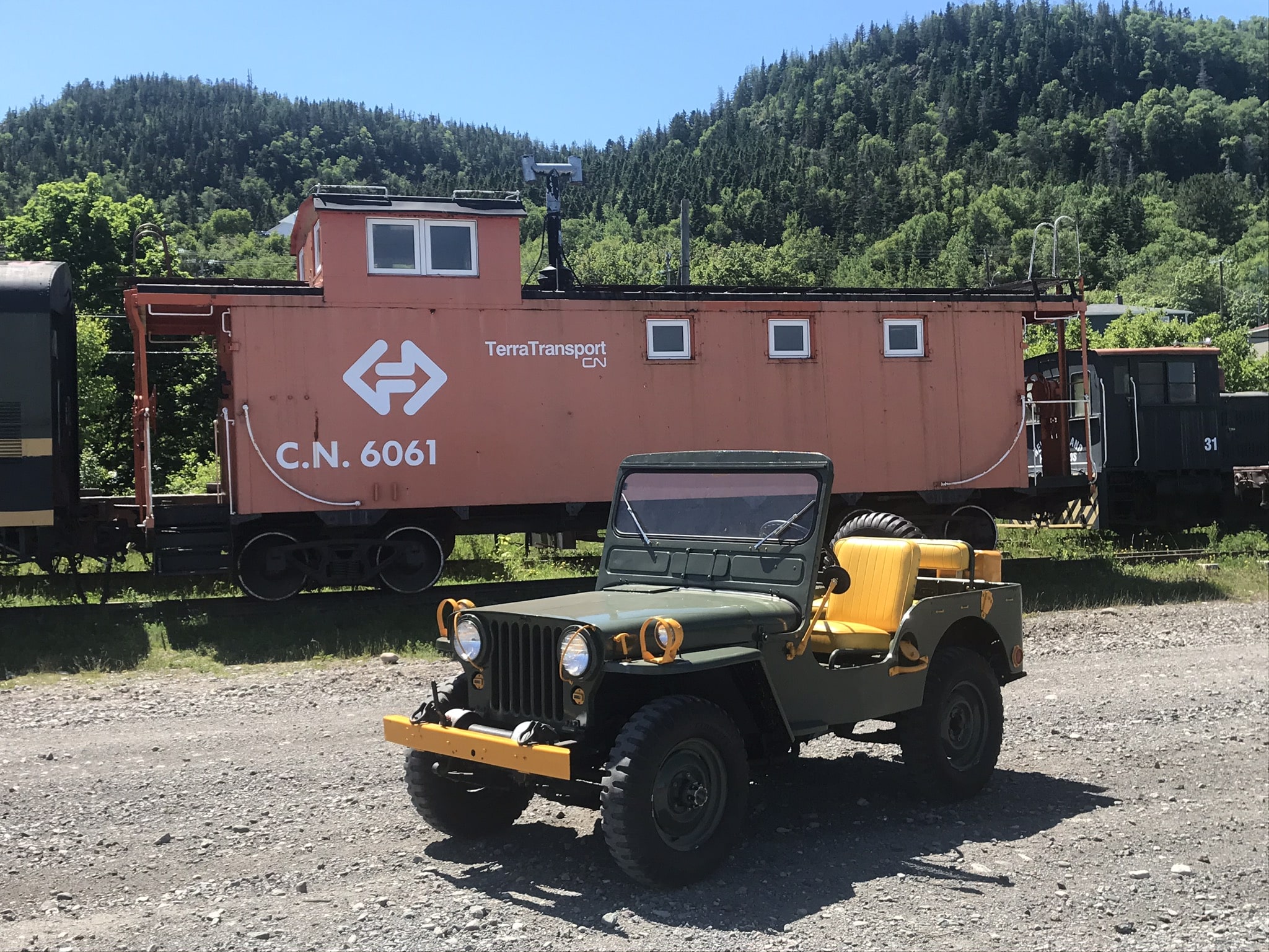 The M38 and the Caboose were restored by my Uncle Ted. He’s owned this Jeep since it was sold as surplus from the Argentia American Military Base in Newfoundland. So he’s the second owner! “Runs like da fiddle” – to quote Ted! Second (sand Jeep) is a 52 CJ-3A on an M38 drive train. I have a few more Jeeps so eventually they will be mated to their matching other half’s.