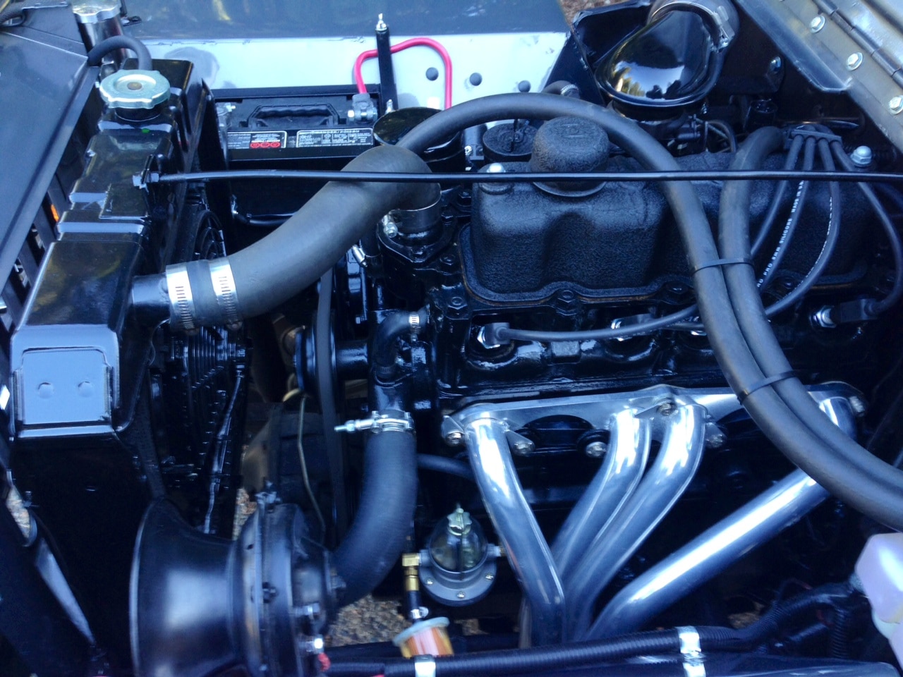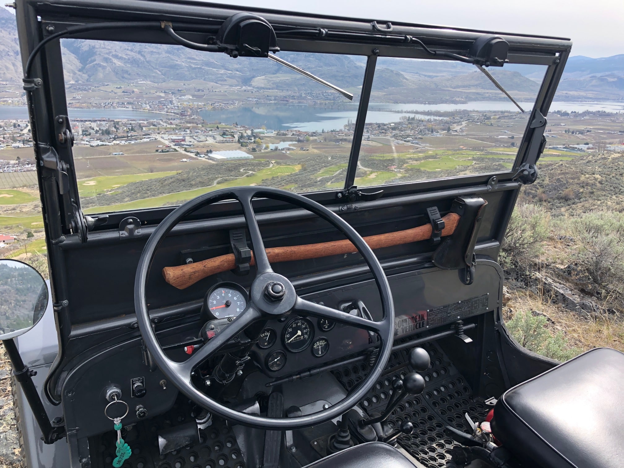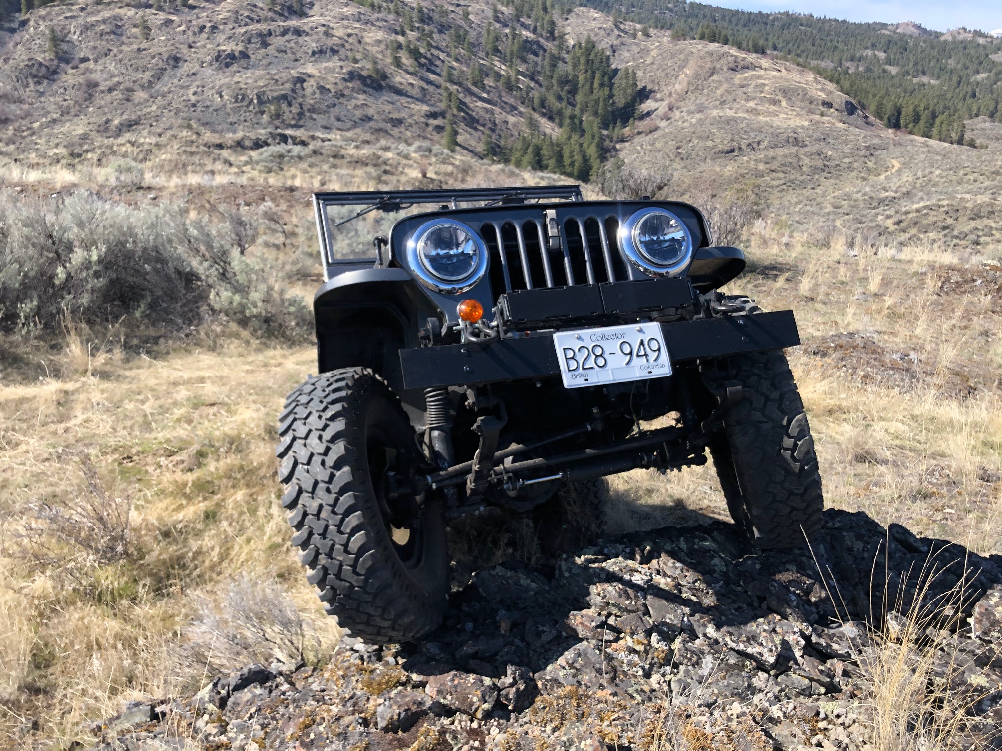 1947 CJ2A. Original Canadian Willys all original sheet metal and body tub. F- Head Hurricane engine, Clifford headers, petronix ignition. Holley Carb. T90 with Saturn Overdrive. 16 inch steel wheels, 255/85r/16 Maxxis mud terrain tires. Farm jack, axe, shovel. Color, Toyota Phantom Grey. Stock seats, original gauges, 66,000 miles.