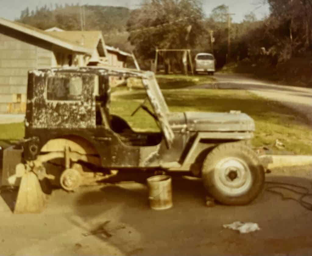 “Play” — 1947 CJ-2A. This was a gift from an Uncle who was building it to play in the sand dunes. Most of the work he had completed was mock up. It has real potential, so now I want to complete his play dream since he has passed away.