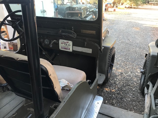 “HONOR “ — 1944 GPW Ford. Purchased from next door Rancher in 1969 in very rough condition. Got it running and preformed a modest restoration including striping several coats of paint. Removed the Military hardware to sporterize and filled the holes with bondo. Layered a coat of primer and two coats of paint. The wife recovered the seats and I drove it to work and play until 1985 when it went into storage. 2022, Decided to restore again bring it back to its original Military glory. That included drilling out all the holes I filled with Bondo in order to replace the Military hardware before laying down Kaiser Willys flat OD paint. When, “HONOR” has been preforming in several Smartsville California Community events, including Wreaths Across America, the annual Veterans Day Parade, and the annual Pioneer Day fundraiser for the church restoration. A stationary crowd pleaser each year.