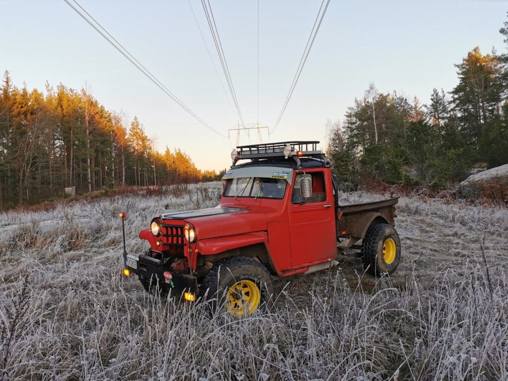 This is my 1952 Willys 4-73 pickup truck. The thing has been through hell and back being used as a work truck here in Sweden at a brewery, in a quarry, in the woods, pulling all kinds of stuff over the years. The old-timers used to have a hydraulic crane behind the cab and a Perkins diesel from a combine under the hood. These pictures are from 2020 when I started driving it with a fresh coat of paint after sitting since the mid 90’s.